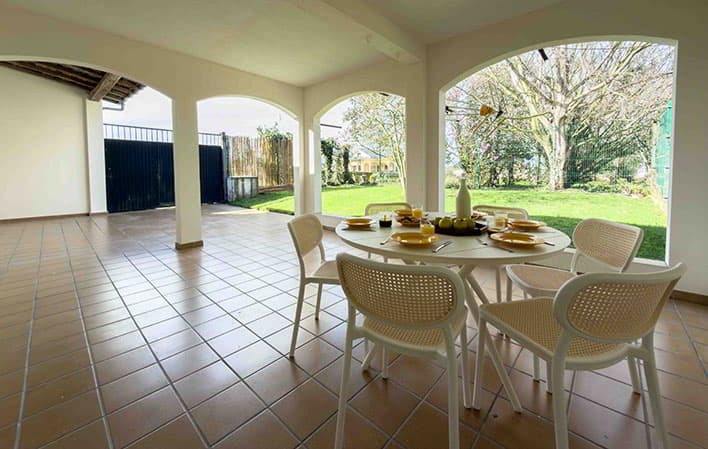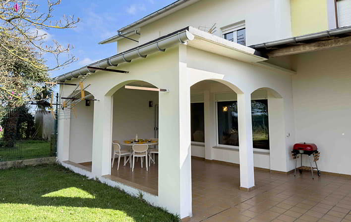 En el exterior cuenta con una amplia terraza cubierta con zona de comedor y un jardín privado, perfectos para relajarse, compartir comidas al aire libre o simplemente disfrutar de la tranquilidad del entorno.