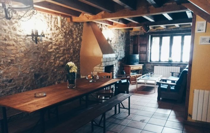 Está rehabilitada en piedra y madera, tiene capacidad para ocho personas y consta de dos plantas. En la primera tenemos la cocina (totalmente equipada) comedor y salón. En esta planta además hay una habitación doble y un aseo. En la planta de arriba tenemos tres habitaciones dobles (dos de ellas con cama de 1,35) y un cuarto de baño. La casa tiene calefacción y chimenea de leña.