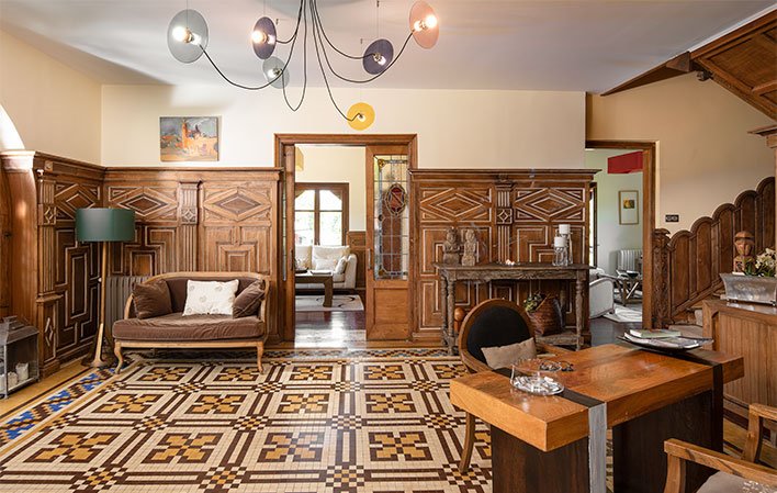 In its restoration, all the existing modernist architectural elements have been preserved: floors, stained glass windows, wooden friezes and staircase.