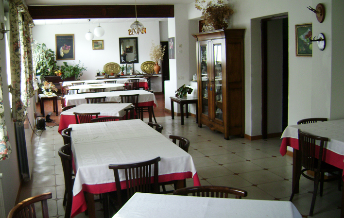 La entrada conserva el enlosado original y da acceso a un gran salón chimenea, al comedor de desayunos, a la sala de reuniones y banquetes y a la escalera de caracol que comunica con la planta de las habitaciones.