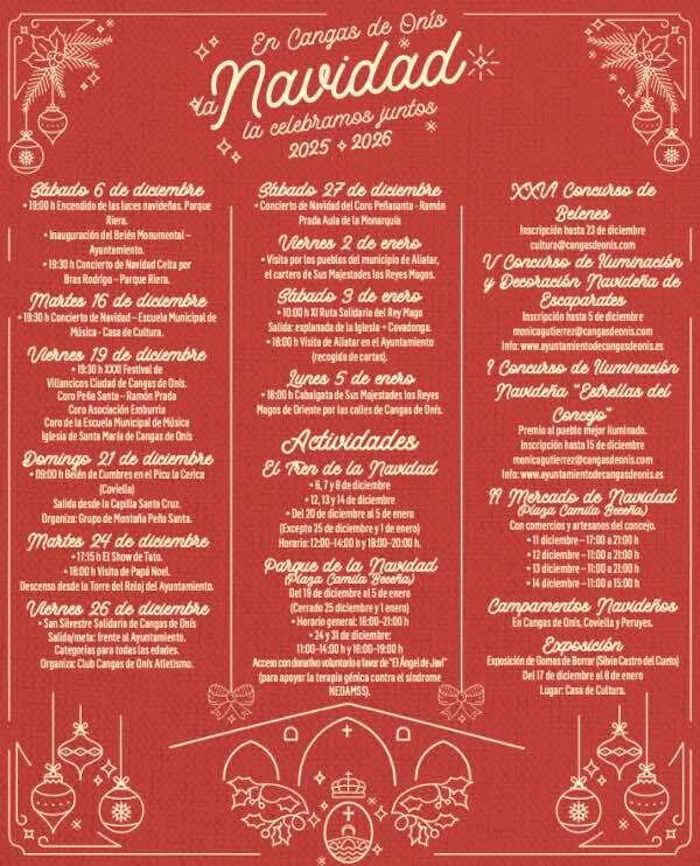 Cangas de Onís celebra la Navidad con un programa que arranca el 6 de diciembre, hasta el 5 de enero de 2026. Música, talleres, concursos y eventos solidarios conforman una completa oferta de actividades.