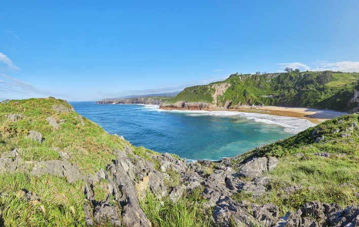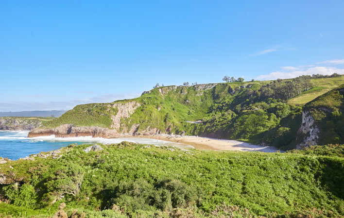 Es la hermana tranquila de la playa de Andrín. Separadas solo por el mirador de la Boriza, Ballota disfruta de unas aguas tranquilas con poco oleaje y una arena fina y blanca. El conjunto que forma junto con el islote del Castro es de espectacular belleza.