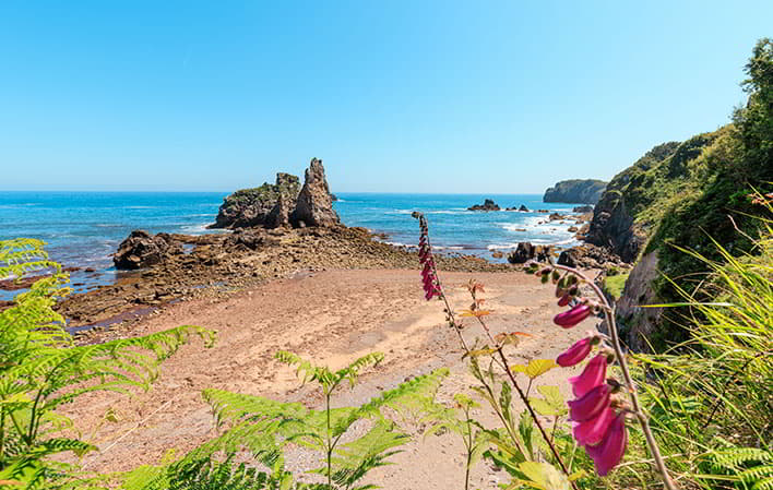 Pendueles dispone de una playa rocosa, de difícil acceso y baño peligroso, pero de una excelente belleza paisajística. Por un camino rural, desde la localidad, se llega hasta este arenal que está unido a un islote, conocido como Los Picones, por una estrecha lengua de tierra y piedras.