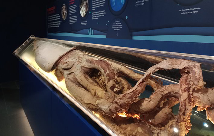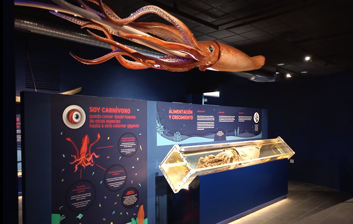 El nuevo espacio museístico te permite hacer una inmersión en el fondo marino y descubrir la vida y hábitat de los cefalópodos más grandes del mundo, así como el de sus presas y sus depredadores, con los que convive en las profundidades del Mar Cantábrico.