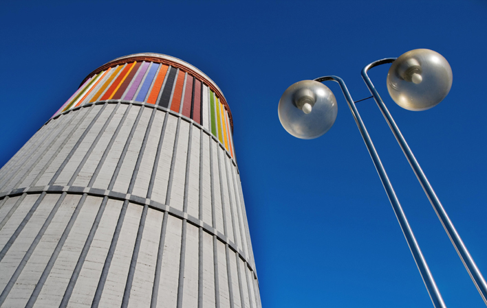 La singular construcción troncocónica, de 45 metros de altura, conforma un espacio circular distribuido en tres pisos y cubierto por un lucernario que ofrece una vertiginosa vista de las paredes de la gran chimenea. El recorrido por sus salas nos habla de una época y un territorio marcado por la gran aventura industrial de Duro y Compañía, que a mediados del siglo XIX creó en La Felguera una fábrica siderúrgica pionera en España.