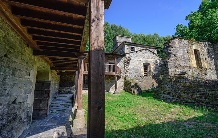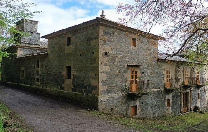 Las cubiertas son de pizarra, como es habitual en la zona, a dos y a cuatro vertientes.