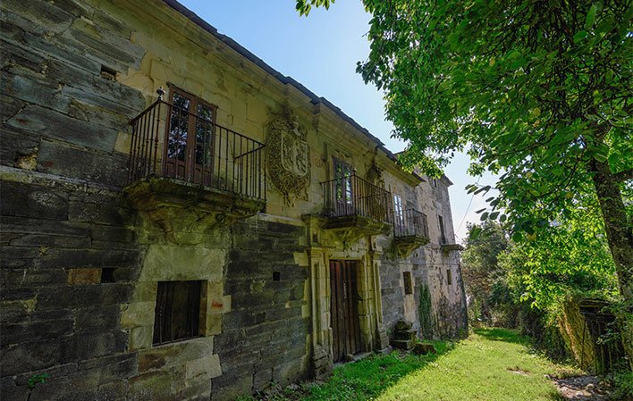 Palacio de estilo barroco asturiano con influencia gallega. Es de planta irregular, estructurado en torno a un patio central. La fachada principal, orientada al sur, presenta un cuerpo central, de menor altura, entre dos torres de planta cuadrada.