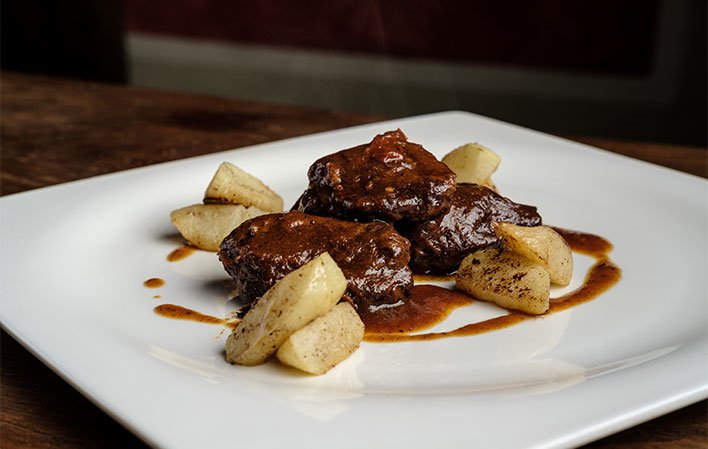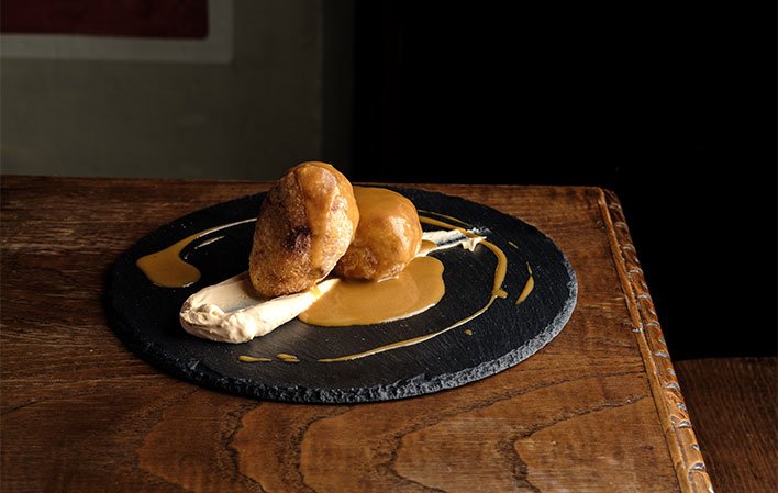 Los platos mas clásicos conviven con otros, que sin perder su esencia sufren una leve transformación para actualizarlos a los tiempos que corren, como las croquetas líquidas de ortigas o el cachopo de buey con humus y tomate.