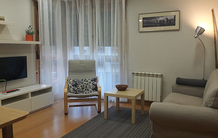 En su interior, el apartamento cuenta con un salón, una cocina-comedor totalmente equipada, un dormitorio independiente con cama matrimonial y un baño completo. Además, ofrece calefacción para los días más frescos y televisión tanto en el salón como en la habitación.