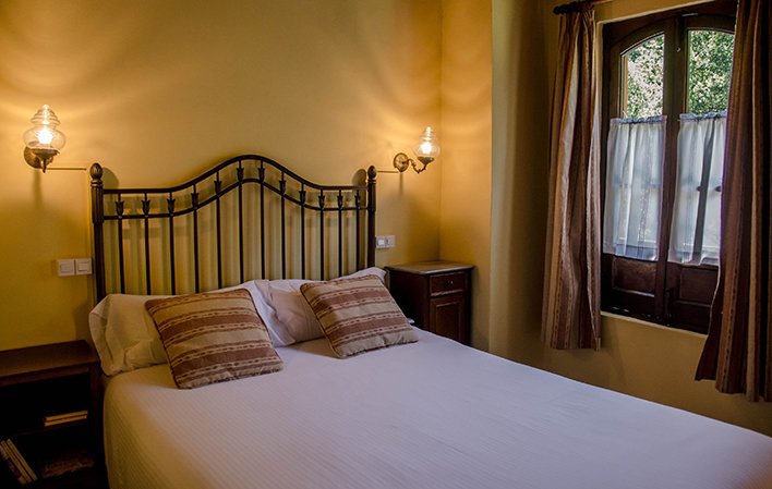 Antiguo edificio de piedra y madera. Dispone de un amplio jardín, zona de juegos y parking gratuito.