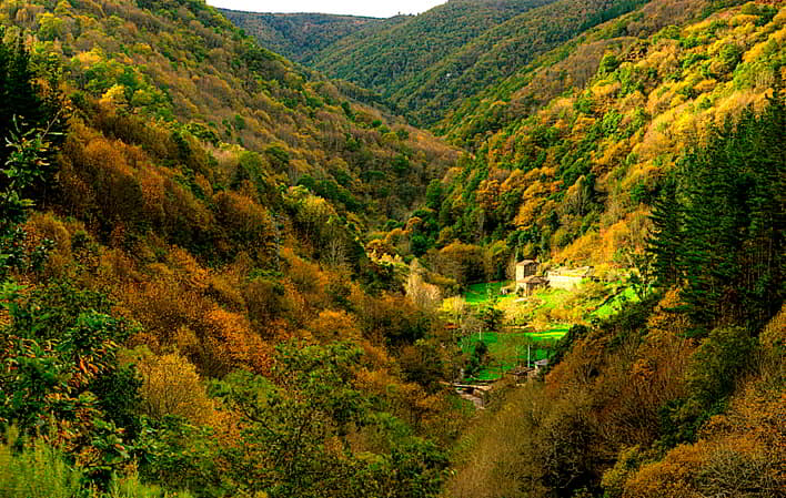 Por la tarde, pasamos de la cultura a la naturaleza. El viajero, según sus condiciones físicas y gustos, puede elegir entre una amplia oferta de sendas. Dos de ellas son: la Ruta del Agua, de 14 kilómetros, que se puede recorrer en cuatro horas y media, o la de Los Ferreiros, de solo 6 kilómetros y una duración de dos horas y media.