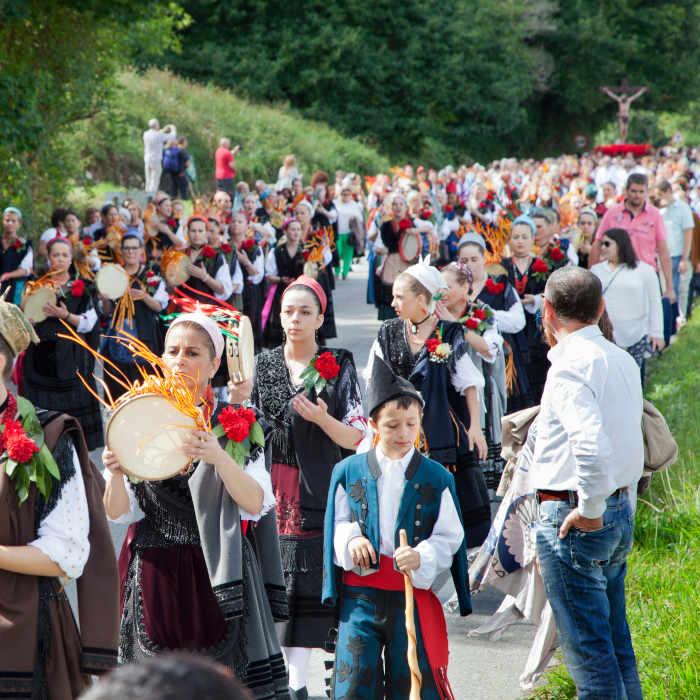 La veille, des défilés accompagnés d'un groupe de cornemuses traversent le village de Nueva in Llanes avec un arbre d'environ 35 m de haut qui est planté à côté de la chapelle du saint. Il s'agit d'un rite ancestral associé à la fertilité et propre aux festivités de l'est des Asturies.