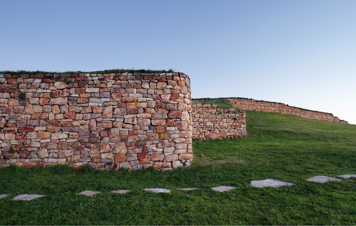 Le site occupe l'extrémité ouest du cap Torres et est divisé en deux secteurs : le secteur supérieur correspond aux structures défensives, à un fossé creusé dans la roche, à un contre-fossé et à la muraille, composée de modules rectangulaires aux angles arrondis.