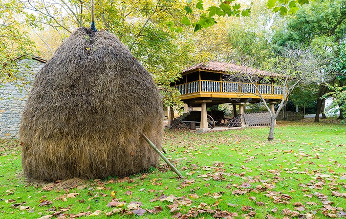 Dans le parc, on trouve des greniers à blé et des greniers à grains des XVIIIe et XIXe siècles. On y trouve également plusieurs terrains de boules pour jouer aux différents types de boules qui existent dans les Asturies, une exposition d'outils agricoles, une maison paysanne du centre des Asturies au rez-de-chaussée et un étang, vestige du paysage marécageux qui dominait l'embouchure de la rivière Piles.