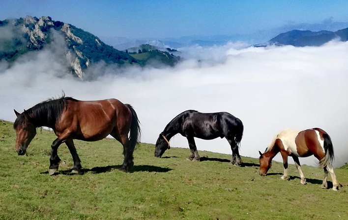 Peu après, le GR se poursuit sur un chemin caillouteux qui traverse des châtaigneraies(Castanea sativa) et des prairies, jusqu'à la Sierra l'Cielo, d'où l'on aperçoit la vallée de la rivière Nalón en amont. À cet endroit du chemin, nous pouvons distinguer la Peña Mea, vers laquelle nous nous dirigeons, un pic qui, à 1 560 mètres d'altitude, est le point le plus élevé du paysage protégé des Cuencas Mineras.