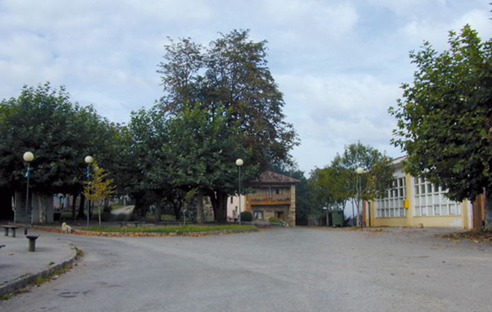 Lorsque nous atteignons la route, nous tournons à gauche, en passant devant l'ermitage de San Lorenzo, un peu avant d'arriver à Romiyu, d'où l'on a une excellente vue sur la chaîne de montagnes du Sueve. Traverser le village et suivre la route jusqu'au croisement avec la route de Vallobil y Lago, puis la suivre jusqu'à une belle maison située à un carrefour, où l'on a deux possibilités : continuer sur la route ou tourner à gauche et entrer dans une belle zone boisée, ce qui, bien que plus long, est un parcours plus gratifiant, que l'on rejoindra un peu plus loin.