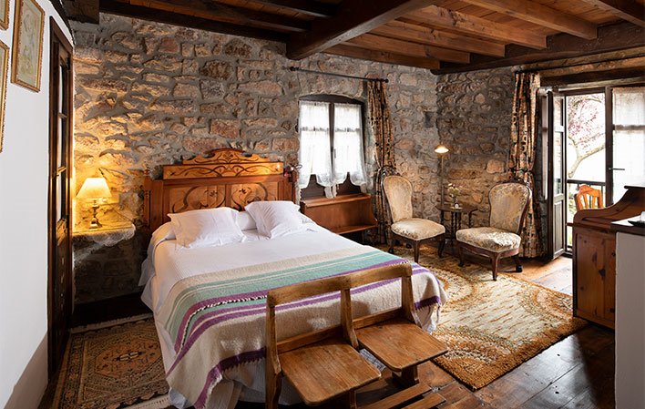 Il dispose de 9 chambres entièrement équipées. Il s'agit d'un hôtel de caractère, grâce au style que ses propriétaires lui ont donné en restaurant tous les bâtiments, dont certains datent du XVe siècle, dans un environnement particulièrement privilégié par la nature.