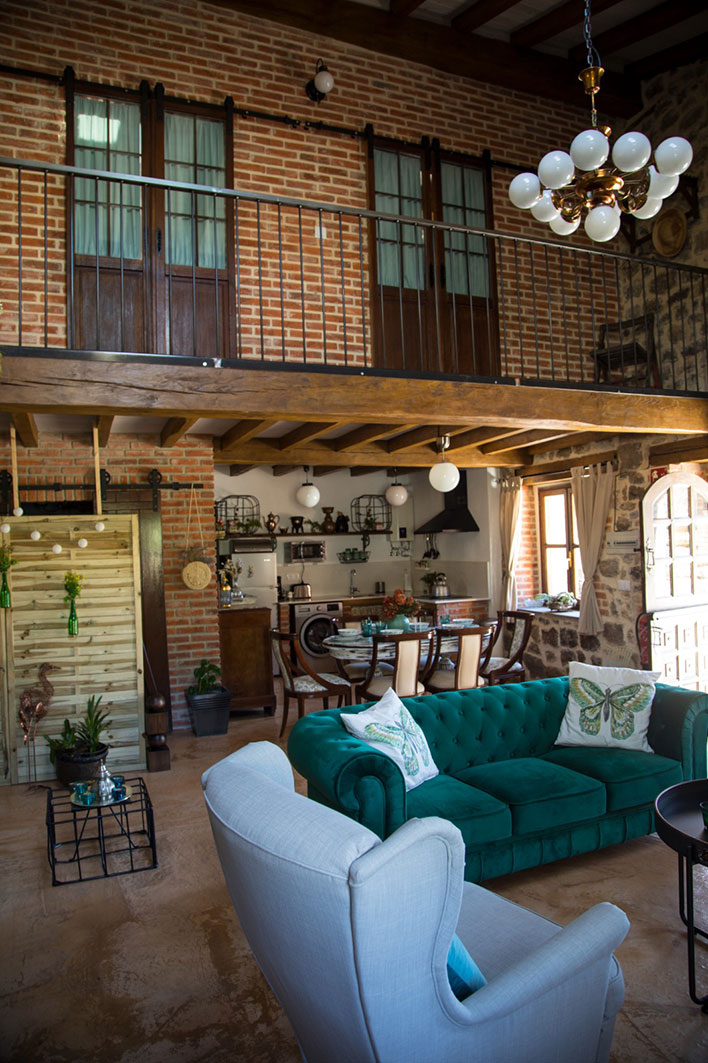 La casa rehabilitada recientemente, era una antigua casa-cuadra de finales del S. XIX. En la restauración se respetó la estructura tradicional y su interior de estilo rústico-industrial.