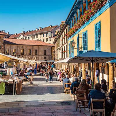 En todo el entorno existen decenas locales pintorescos para tomarse un aperitivo o degustar la mejor gastronomía asturiana entre compra y compra.