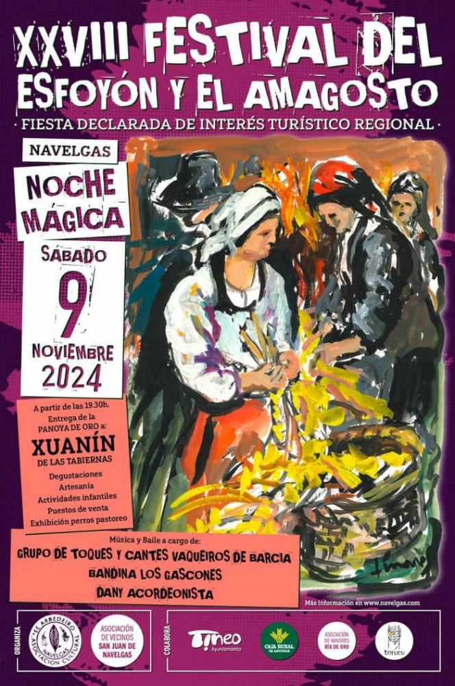L'Esfoyón inizia al tramonto, nel quartiere di Navelgas de Arriba, che viene addobbato per l'occasione. Le strade sono coperte di paglia e illuminate da torce. La gente del posto si veste con costumi antichi e le diverse Associazioni Culturali si occupano di preparare una varietà di cibi (frisuelos, castagne, torte di mais, bollo preñao, burro appena scremato). Si svolge la cerimonia di premiazione della "Panoya de Oro", seguita da degustazioni e attività per bambini. I ragazzi distribuiscono garutsa (anisetta e orujo di ciliegie fatti in casa), caffè e sidro appena fatto per aiutarli a superare la fredda notte di novembre. Il piano terra dei panifici e delle stalle è occupato da artigiani locali che danno una piccola dimostrazione del loro lavoro. Così possiamo trovare il "madreñeiro", il "cesteiro", il "ferreiro", ecc.