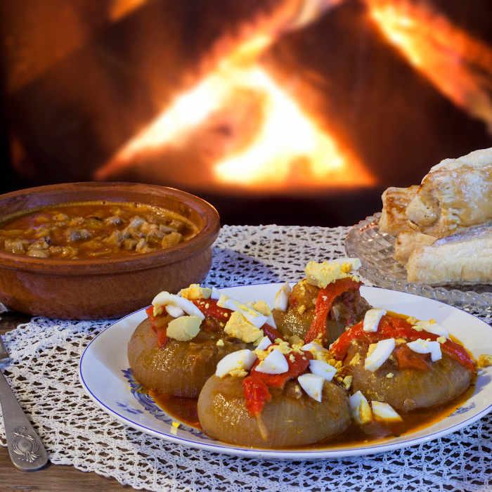 La ristorazione propone menù composti da cipolle ripiene di tonno, una porzione di trippa e, come dessert, casadielles. È anche possibile degustare solo singole porzioni di cipolle.
