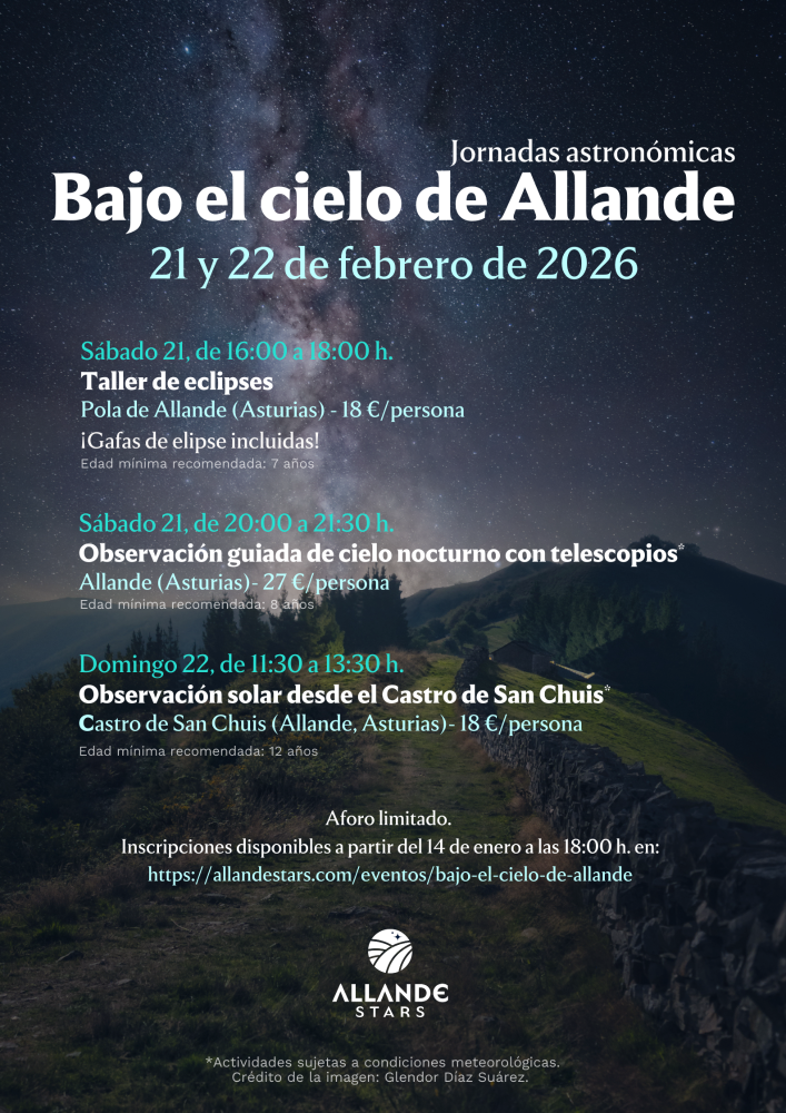 Explorarás el cielo de invierno desde este Concejo Starlight, a través de nuestros telescopios y las explicaciones del equipo de Doctoras en Astrofísica de Allande Stars.