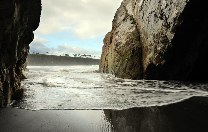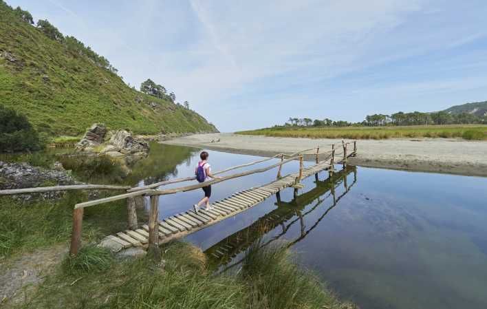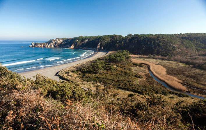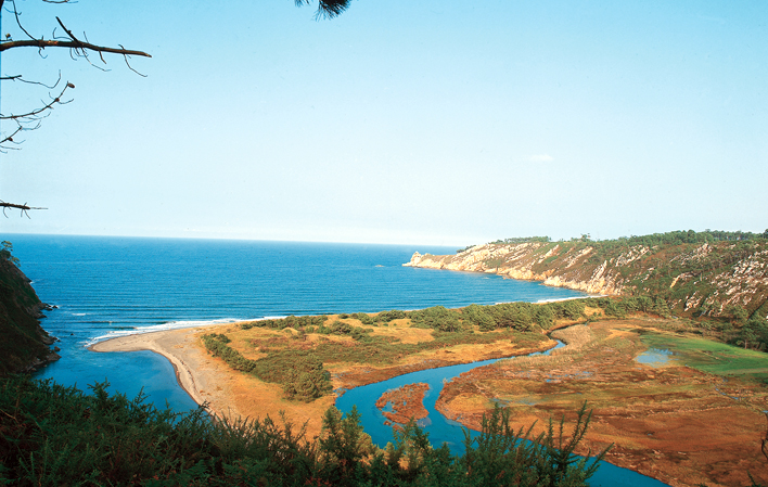 Il fiume si avvicina alla zona balneare sul lato orientale, anche se sfocia nella parte occidentale, e ad eccezione delle spiagge di Barayo e Sabugo, il resto della costa è scoglioso, con diversi isolotti. Queste scogliere sono costantemente battute dalle onde, formando numerosi affioramenti rocciosi e grotte durante questa eterna battaglia.