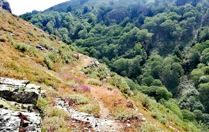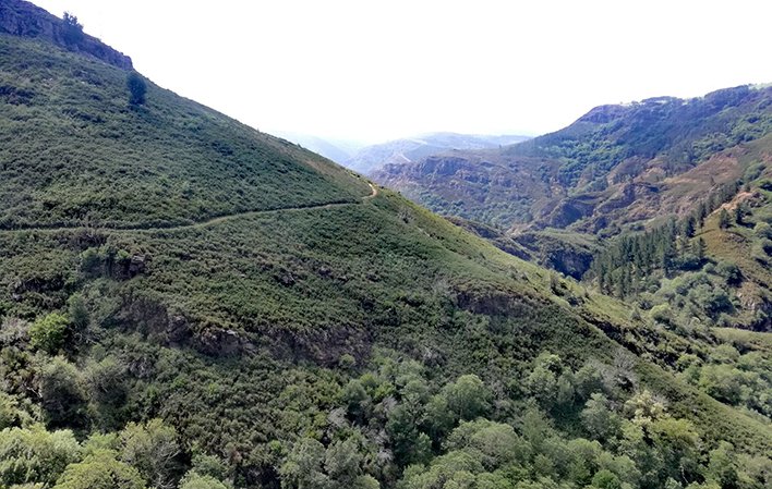 L'ultima parte del percorso alternativo si snoda a zig-zag lungo una pista forestale che attraversa boschi di pini, attraversa il fiume Agüeira e sale fino ad A Coba, da dove si unisce al percorso principale per proseguire fino a Santa Eulalia de Oscos.