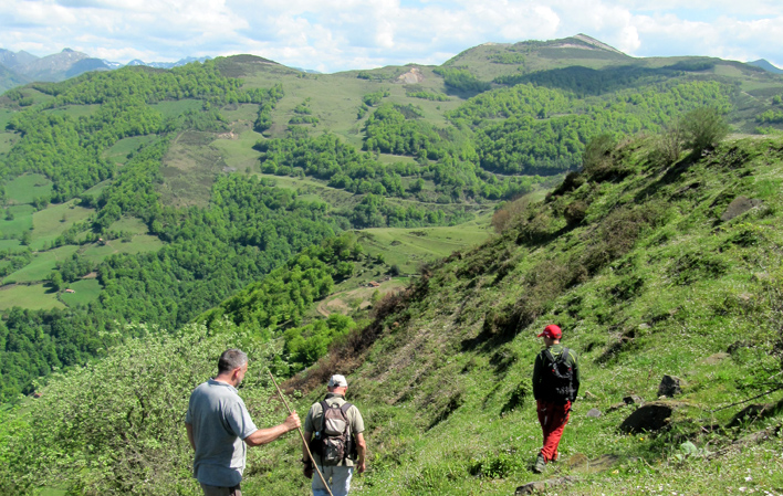 Superata questa massa boschiva, il GR-208 sale fino a raggiungere la cresta di Curriel.los. Una volta raggiunta la cima, avremo un'eccellente vista panoramica sulla valle di Cabañaquinta e sulle catene montuose vicine, come il Navaliego, che separa i comuni di Aller e Mieres. A Curriel.los, il GR-208 svolta a destra alla ricerca dei pascoli di Coto Bello, unendosi alla pista che sale a Renorios, che lasciamo sulla sinistra per attraversare il prato di Braña de Sote, alla ricerca della strada per Coto Bello.