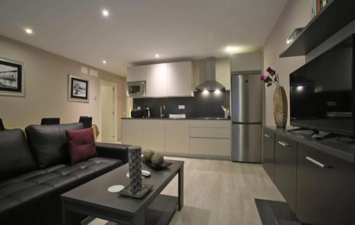 Los apartamentos también cuentan con salón con TV y cocina totalmente equipada, con vitrocerámica, horno microondas, frigorífico, lavadora y lavavajillas, tostadora, cafetera de cápsulas y equipo de planchado, además de los utensilios de cocina necesarios.