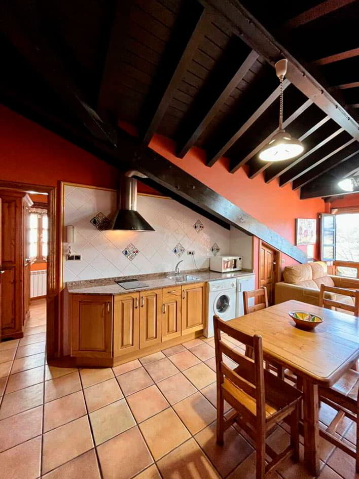 Apartamentos decorados en estilo rústico, con interiores de madera, completamente equipados.