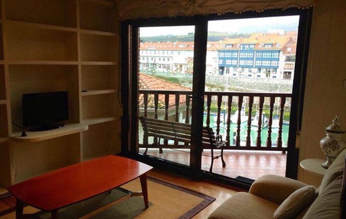 Vivienda de uso turístico en el puerto de Llanes con dos dormitorios, dos baños, salón con terraza, cocina y tendedero a 300 metros de la playa del Sablón.