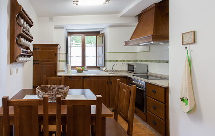 Todos los apartamentos disponen de: vitrocerámica, microondas, nevera, lavavajillas, batidora, tostadora, exprimidor, amplio menaje de cocina, plancha, lavadora, secador…