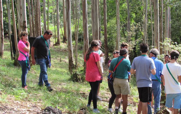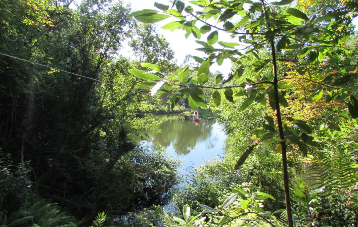 Centro de ocio en un bosque mixto con actividades de entretenimiento, deportivas y observación de la naturaleza.