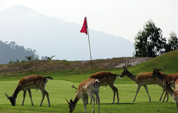 Lo más natural del mundo en este campo es jugar al lado de los gamos, solos o en manadas, que, acostumbrados a los golfistas, pasean y pastan por él, con toda normalidad.