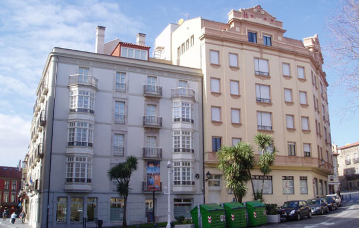Restaurante del Hotel Asturias en la Plaza Mayor próximo a la playa de San Lorenzo.