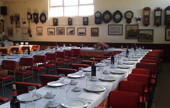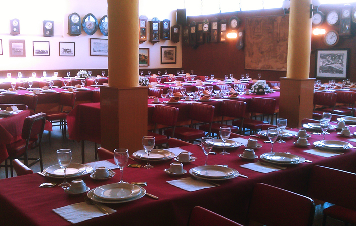 Sus instalaciones son ideales para celebrar comidas de grupos, empresas, despedidas de soltero, comuniones, bautizos y reuniones familiares. Disponen de un amplio comedor principal y ofrecen varios menús de grupos y cuenta con una exposición de más de 145 relojes antiguos.