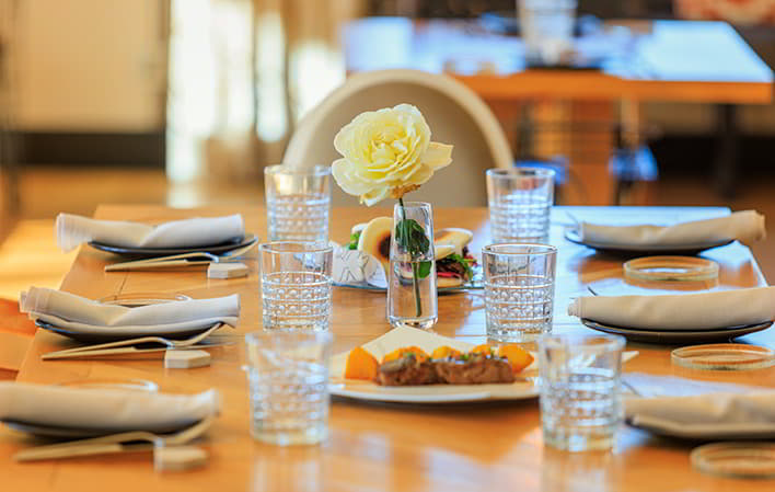 Terrazas disponibles para servicios de comidas y cenas. Menús para diabéticos, vegetarianos y veganos.