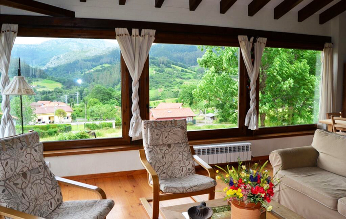 En uno de los apartamentos se puede disfrutar, a través de sus grandes ventanales, de la magnífica vista del Sueve.