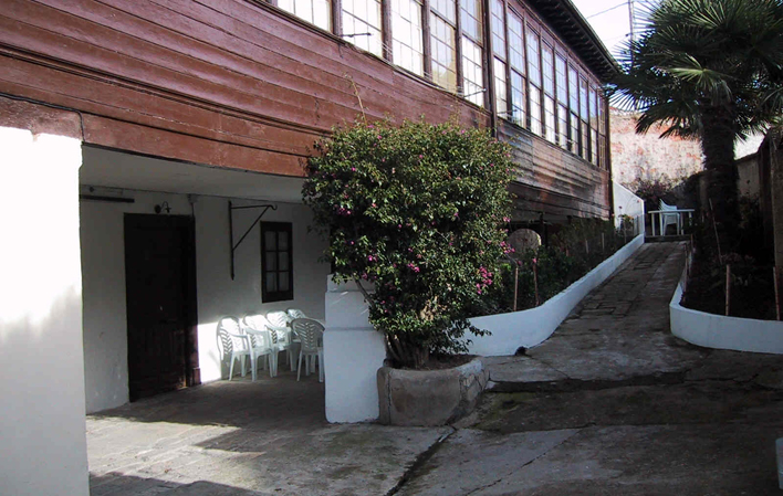 Cuenta con un patio empedrado en el que se conserva un lavadero tradicional.