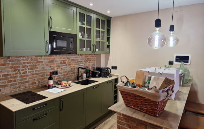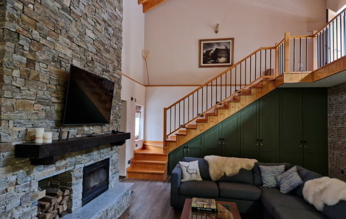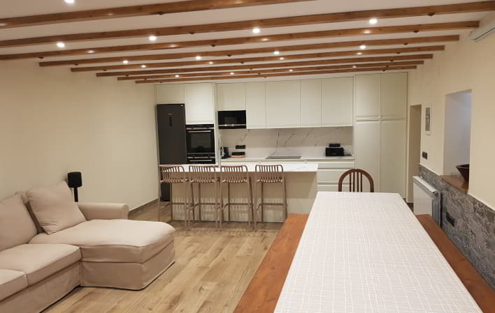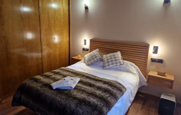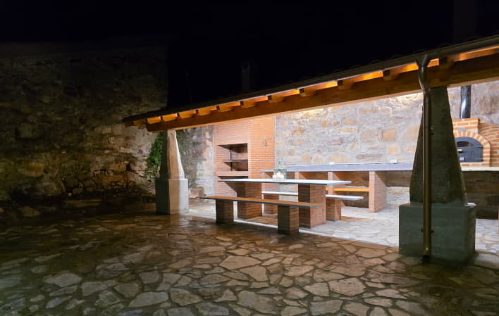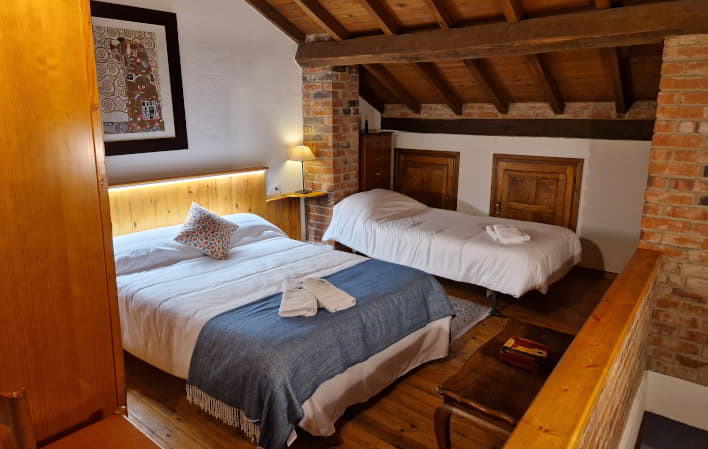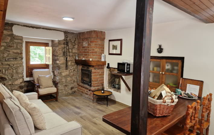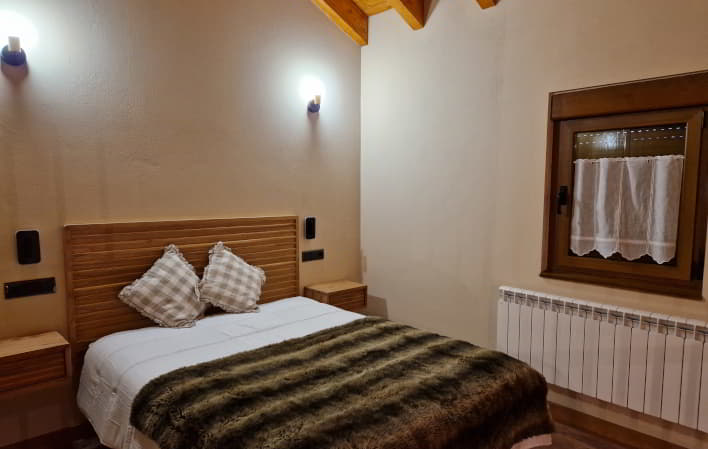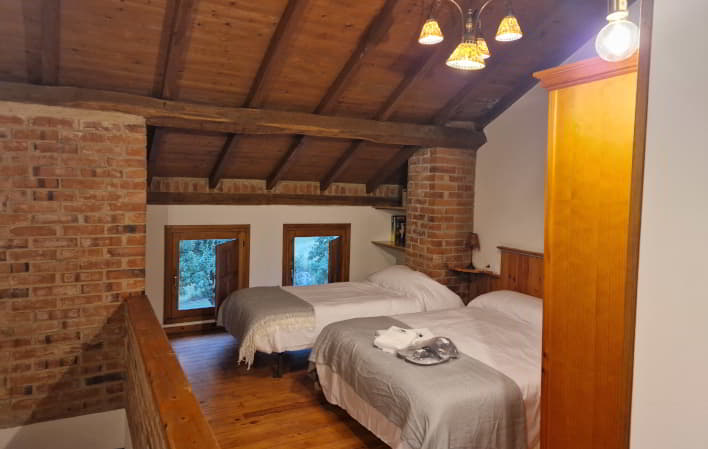 El complejo, catalogado como apartamento turístico, se alquila en su conjunto y dispone de tres estancias independientes con capacidad máxima para 14 personas. Los espacios comunes incluyen una cuadra rehabilitada como cocina-comedor, con mesa para 18 comensales, y El Refugio del Oso, una cabaña de dos plantas equipada con chimenea, barra de bar y billar.