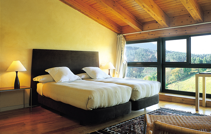 Dispone de 7 habitaciones con terrazas orientadas al Sur, desde donde se puede disfrutar de las vistas y la tranquilidad que brinda la zona. Cuenta con un espacioso y luminoso salón con chimenea y zona Wi-Fi gratuita, sala de televisión y cine, restaurante, terraza y prado con espléndidas vistas al mar y la montaña. La filosofía del hotel se basa en el respeto al medioambiente; energías renovables en la climatización y agua caliente, productos locales y de mercado, huerta propia y reciclaje de todo tipo de residuos.
