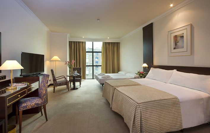 El hotel cuenta con acogedoras y completas habitaciones distribuidas en siete plantas, equipadas con todas las comodidades propias de un hotel de cuatro estrellas. Algunas habitaciones ofrecen vistas panorámicas del casco urbano.