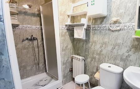 El baño cuenta con plato de ducha, secador de pelo, botiquín y papel higiénico.