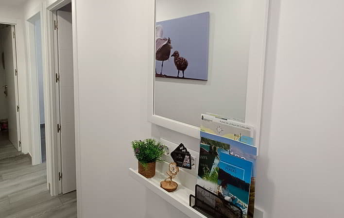 Se encuentra en la tercera planta de un edificio sin ascensor. Es un apartamento muy luminoso y soleado, de tamaño reducido, pero con capacidad para 6 personas.