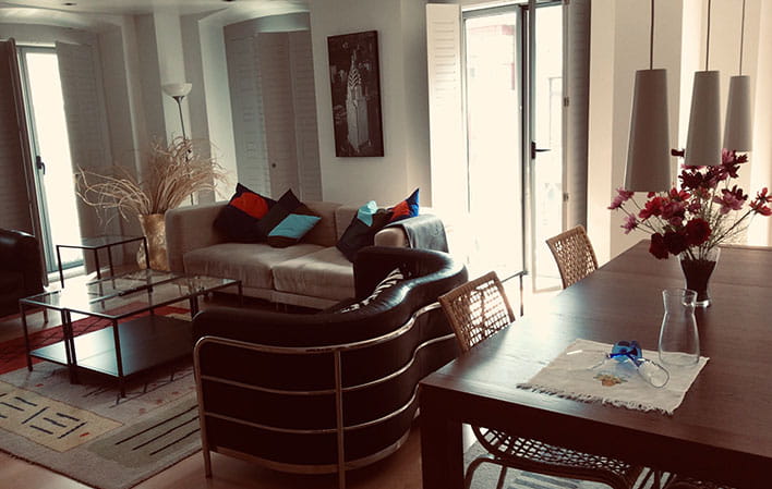 La vivienda está en un edificio situado en la plaza del Ayuntamiento de Oviedo/Uviéu con una decoración y estilo nórdico, brindando un ambiente alegre y moderno que se complementa con la animada actividad turística que se desarrolla en la plaza.