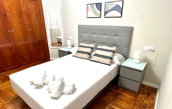 Cercana a importantes puntos de interés como la calle Gascona y la Catedral. Cuenta con tres habitaciones para un máximo de seis personas y plaza de garaje para dos coches.