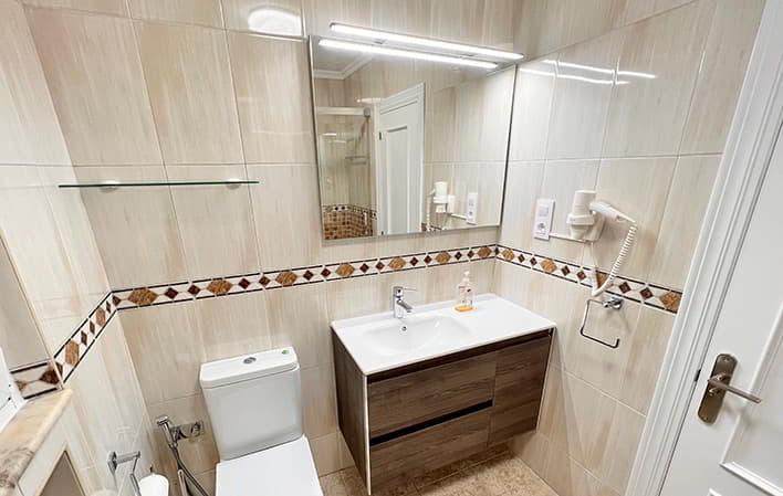 Dispone de un baño con ducha y un aseo adicional. El salón-comedor es amplio y tiene acceso a un balcón con vistas a la calle.