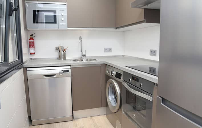 El baño dispone de un plato de ducha y suelo radiante para mayor confort, y se incluye conexión WiFi en todo el apartamento para mantenerse conectado en todo momento.