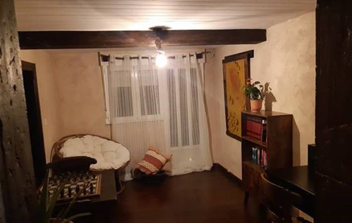 Casa de piedra de dos plantas con cocina, almacén de ropa limpia, dos habitaciones, baño, sala de lectura, salón.